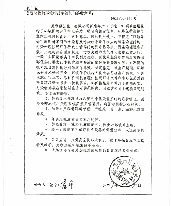 5萬(wàn)噸PVC竣工驗(yàn)收批復(fù)