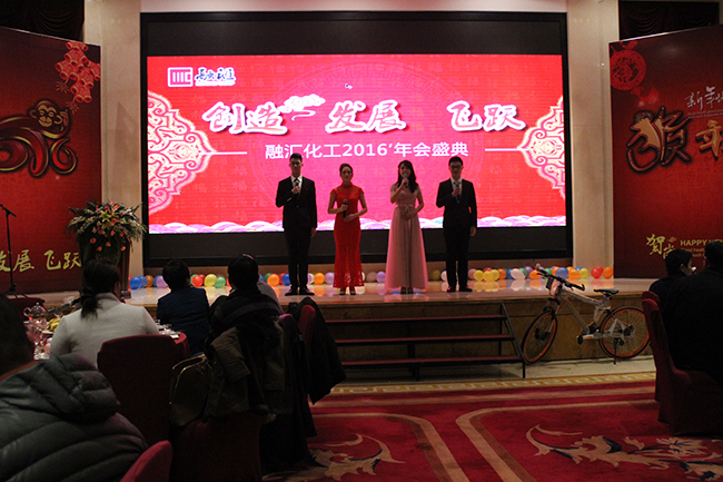 2016年1月30日下午,“創(chuàng)造?發(fā)展?飛躍”融匯化工2016年年會(huì)于安徽蕪湖漢爵陽明大酒店隆重舉行。