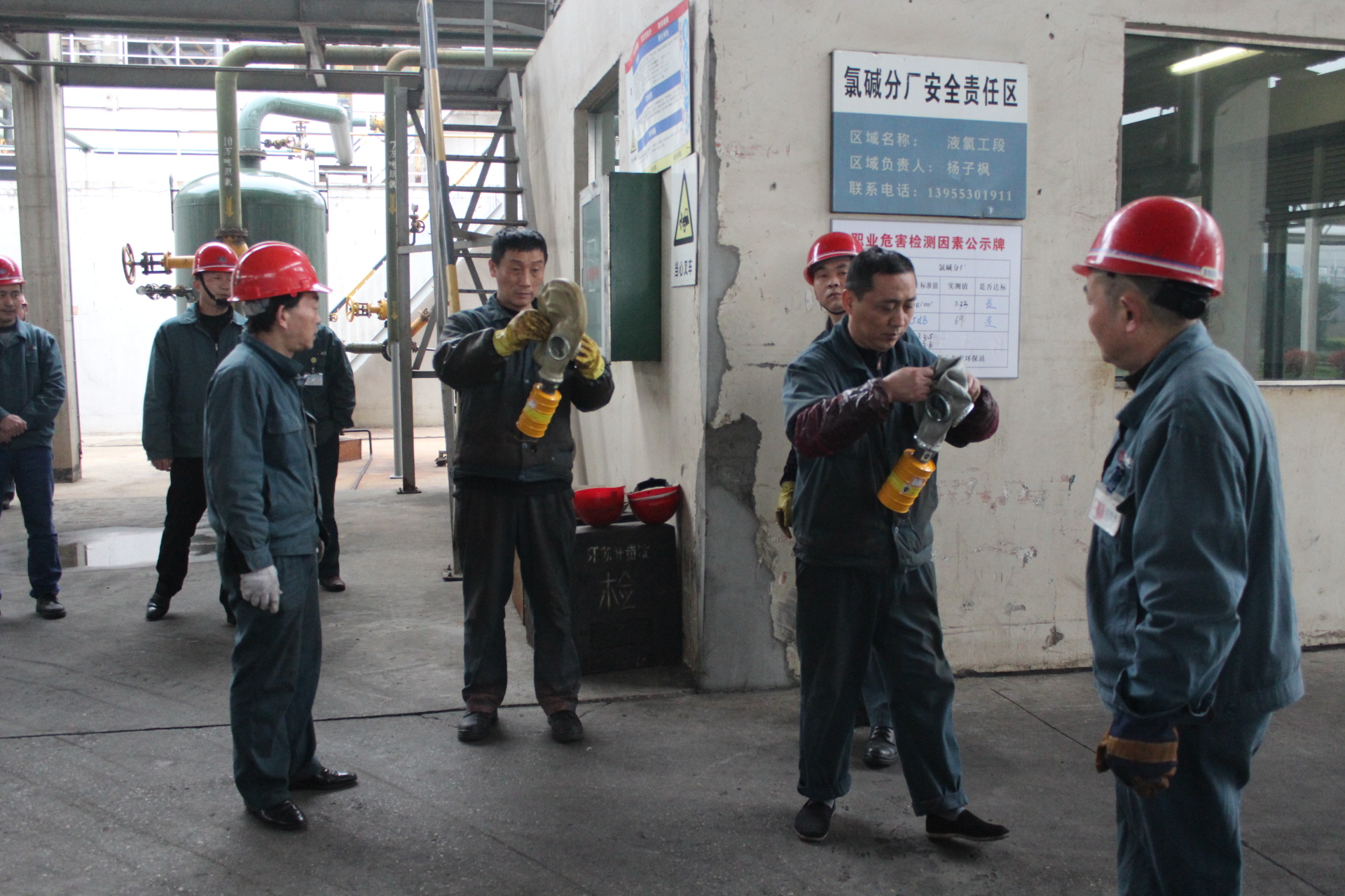 2017年3月30日,液氯包裝紫銅管在包裝過程中發(fā)現(xiàn)泄漏的處理預案演習在第一事業(yè)部液氯工段現(xiàn)場如期舉行。