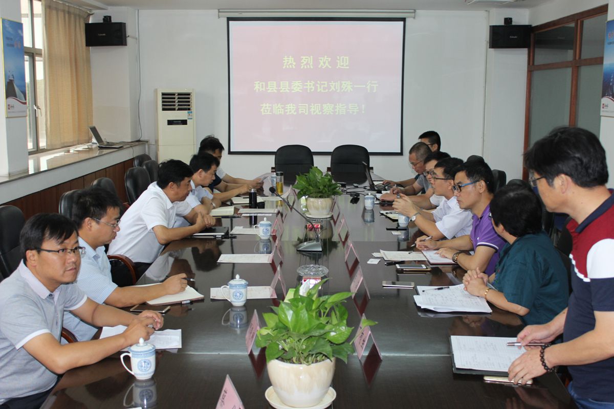 8月9日下午,和縣縣委書記劉殊率縣委有關(guān)部門的主要負(fù)責(zé)人一行到我司視察指導(dǎo)工作,集團(tuán)領(lǐng)導(dǎo)、公司副董事長(zhǎng)唐世界及相關(guān)領(lǐng)導(dǎo)進(jìn)行了熱情接待。