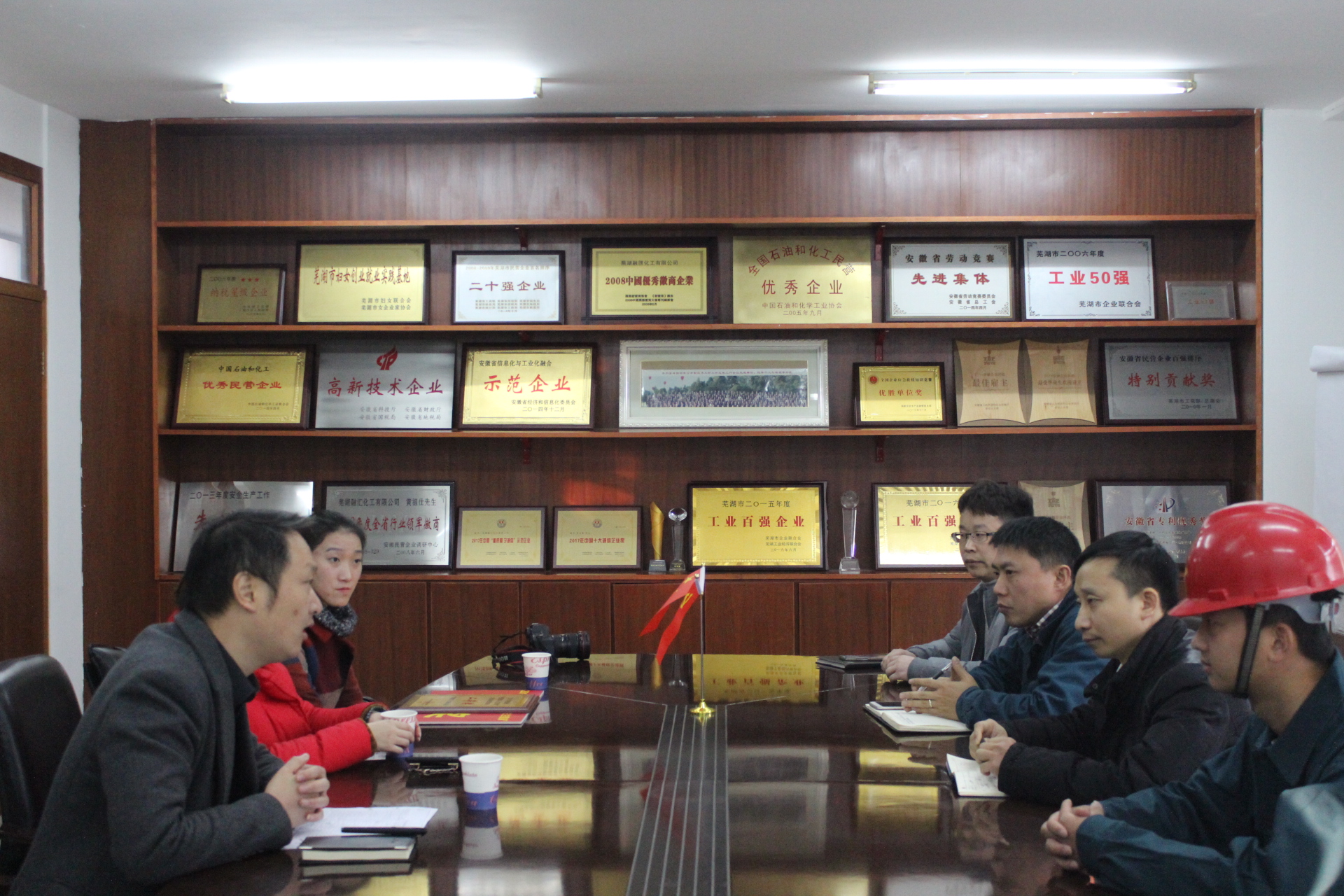 者送獎牌和獎金到公司祝賀,并和公司負責(zé)安全、人資的負責(zé)人,還有作品主創(chuàng)部分人員就2018年蕪湖安全生產(chǎn)宣傳