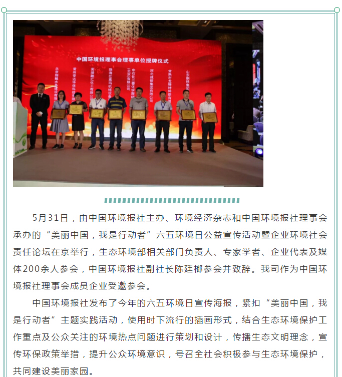 “美麗中國,我是行動者”——我司受邀參加六.五環(huán)境日公益宣傳活動暨企業(yè)環(huán)境社會責任論壇