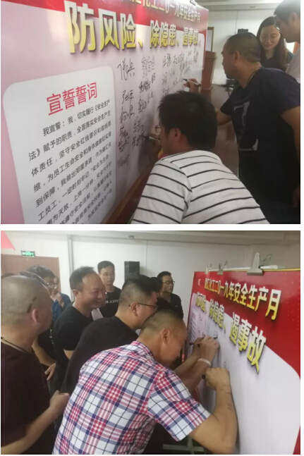 會上,宣誓儀式之后還進行了安全承諾簽名活動。公司領導、各部門負責人及在場員工共100余人參加了此次活動。據悉,為擴大安全生產月宣傳范圍和效果,活動組織方當天還在中午食堂布置了安全承諾簽名活動,兩地互動,眾志成城為安全。